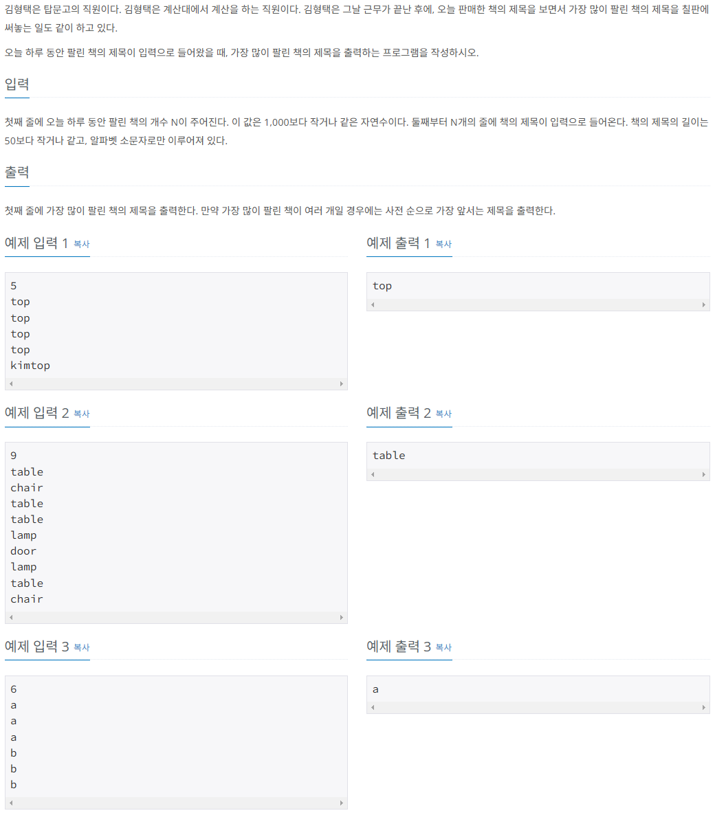문제 사이트: https://www.acmicpc.net/problem/1302