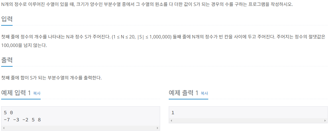 문제 사이트: https://www.acmicpc.net/problem/1182
