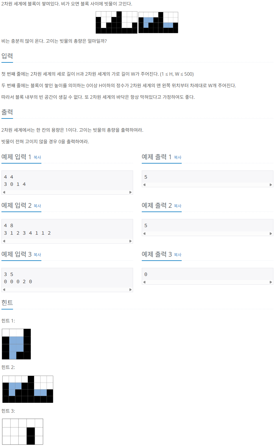 문제 제목: 빗물 / 14719번 (골 5단계)
