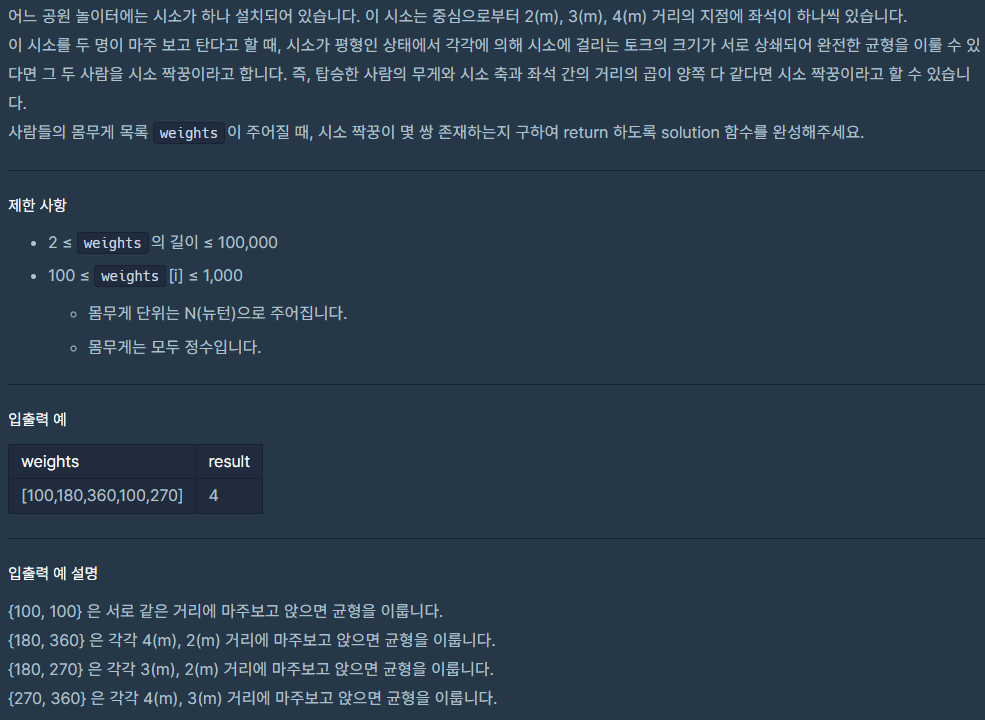 [프로그래머스 Lv2,python] - 시소 짝꿍