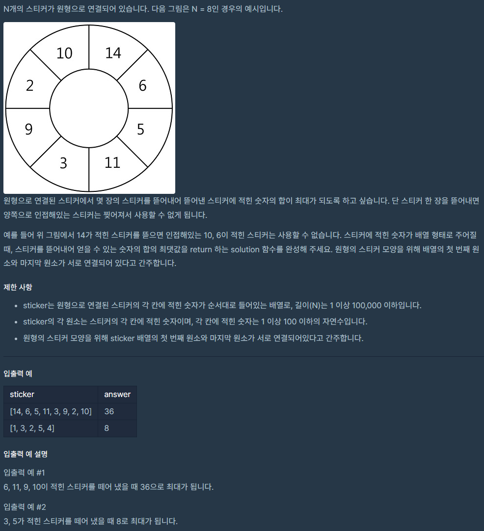 dp1 = [0] + sticker[:-1] # dp1 1번째를 스티커를 선택했을 때
