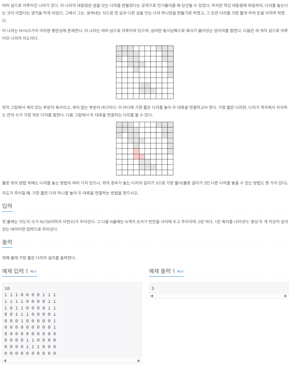 문제 사이트: https://www.acmicpc.net/problem/2146