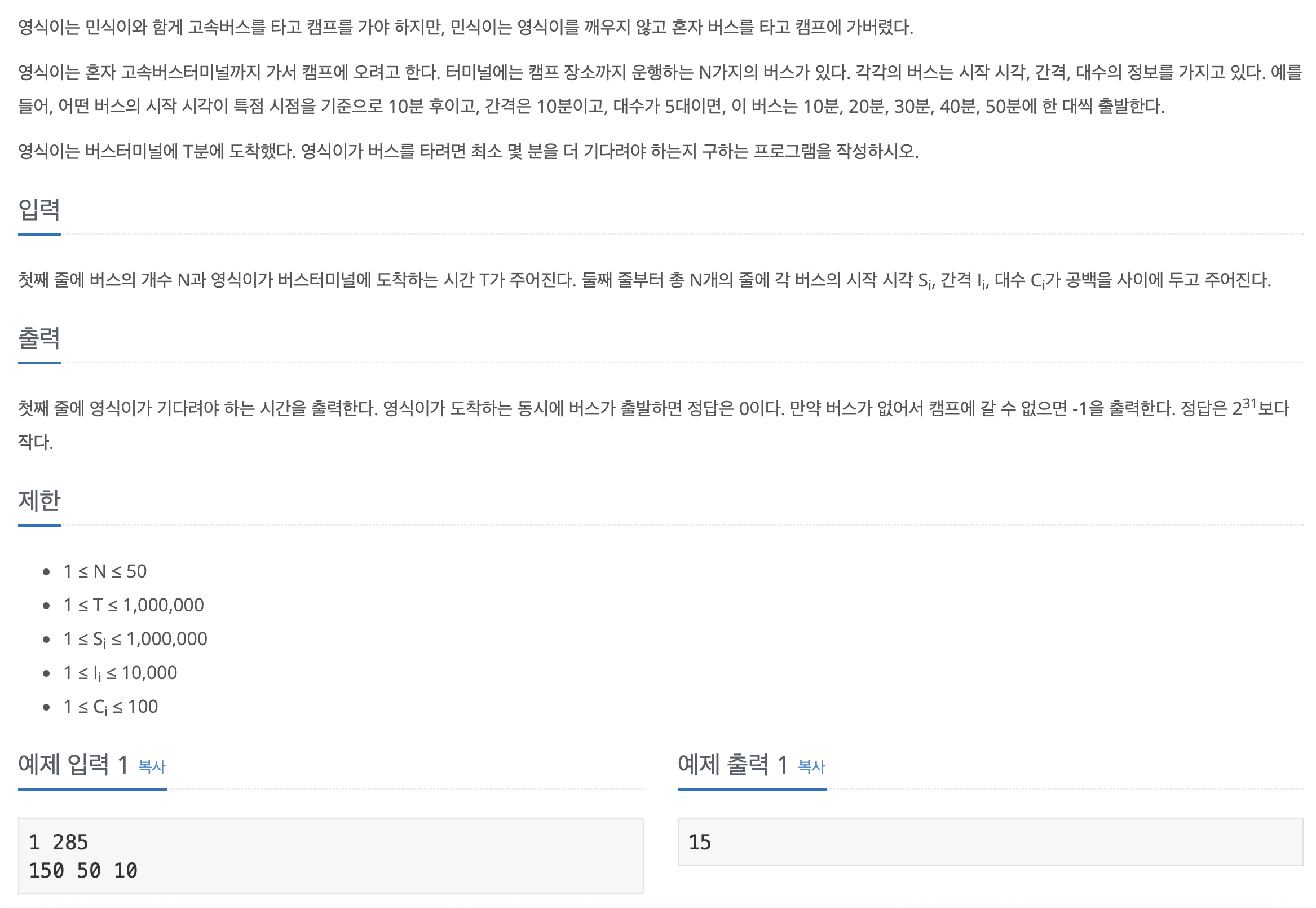 # T 이후에 출발하는 가장 빠른 버스 찾기
