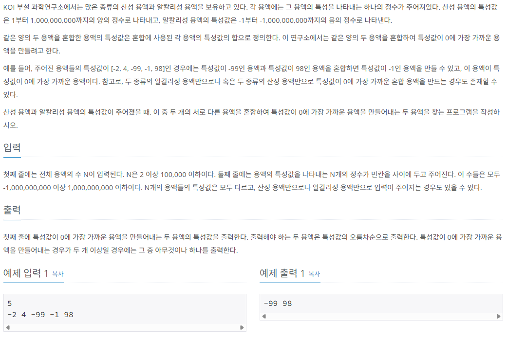 문제 사이트: https://www.acmicpc.net/problem/2470
