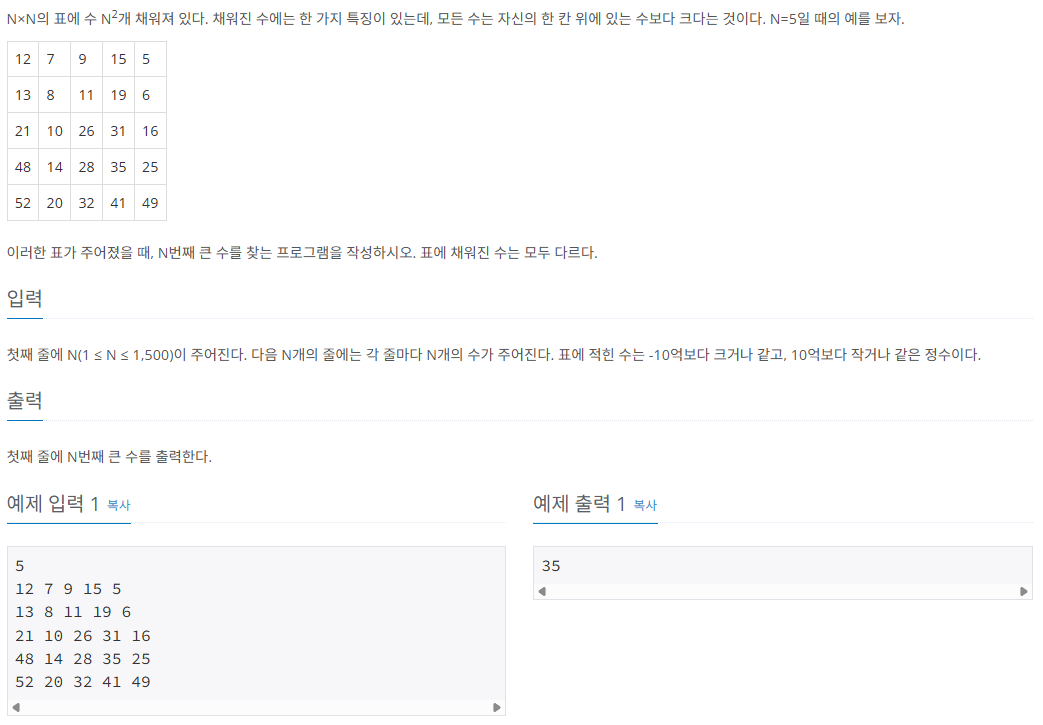 문제 사이트: https://www.acmicpc.net/problem/2075