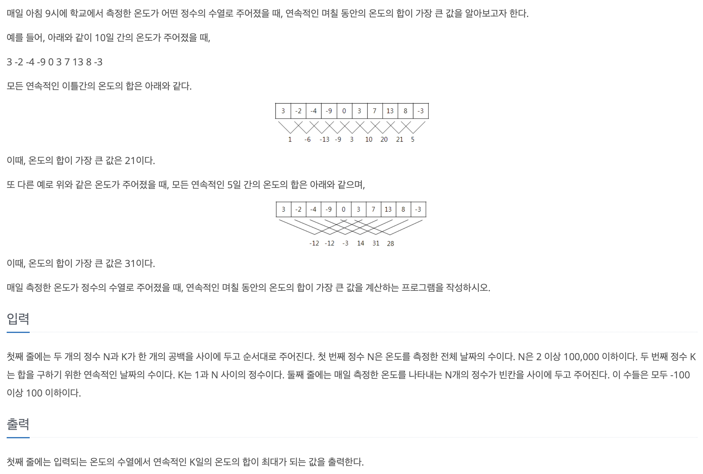 문제 사이트: https://www.acmicpc.net/problem/2559