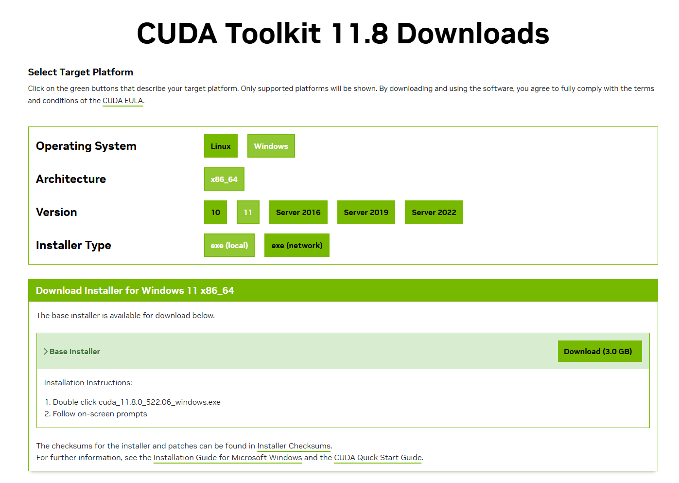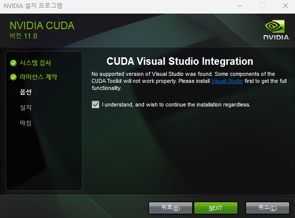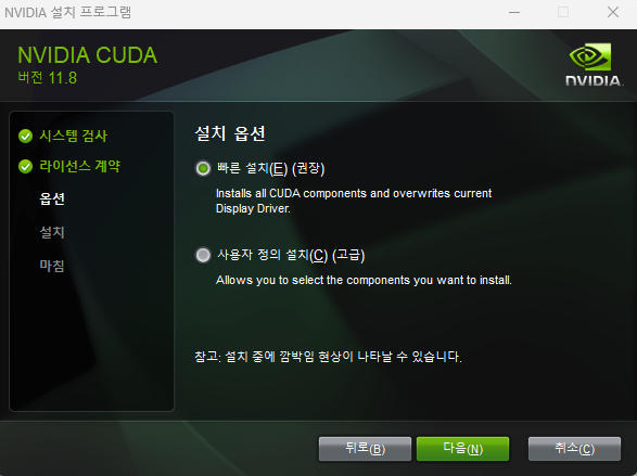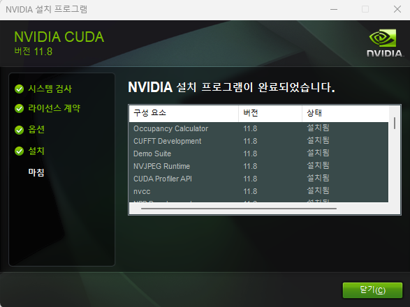 그래서 저는 기존의 프로젝트와 호환이 되는 cuda 11.8을 설치했습니다!