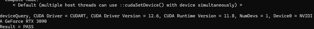 (윈도우키+R, cmd 입력) 윈도우 명령 프롬프트를 실행한 후 “C:\Program Files\NVIDIA GPU Computing Toolkit\CUDA\v11.8\extras\demo_suite\deviceQuery.exe” 실행하면 설치가 완료된 것을 볼 수 있습니다!