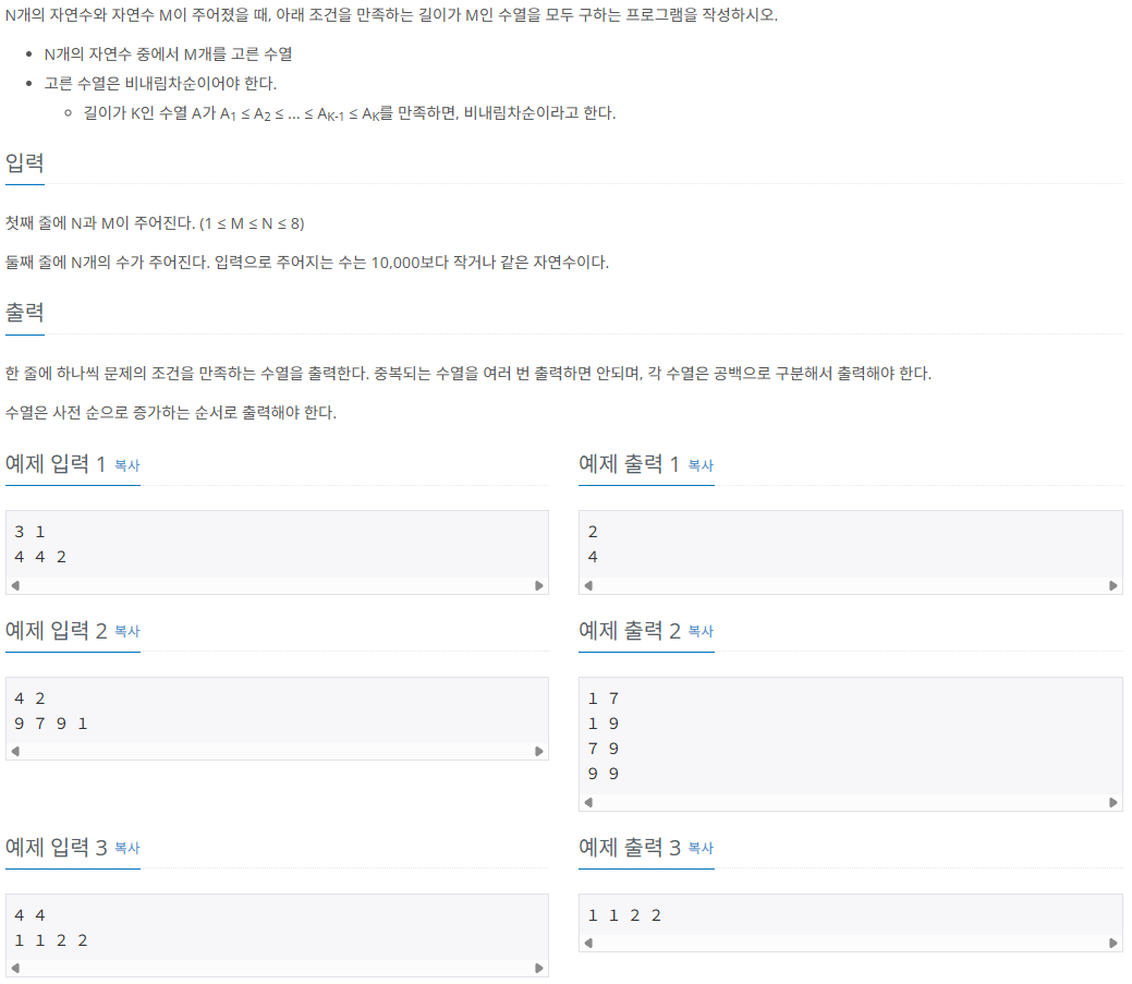 문제 제목: N과 M (10) / 15664번 (실버 2단계)