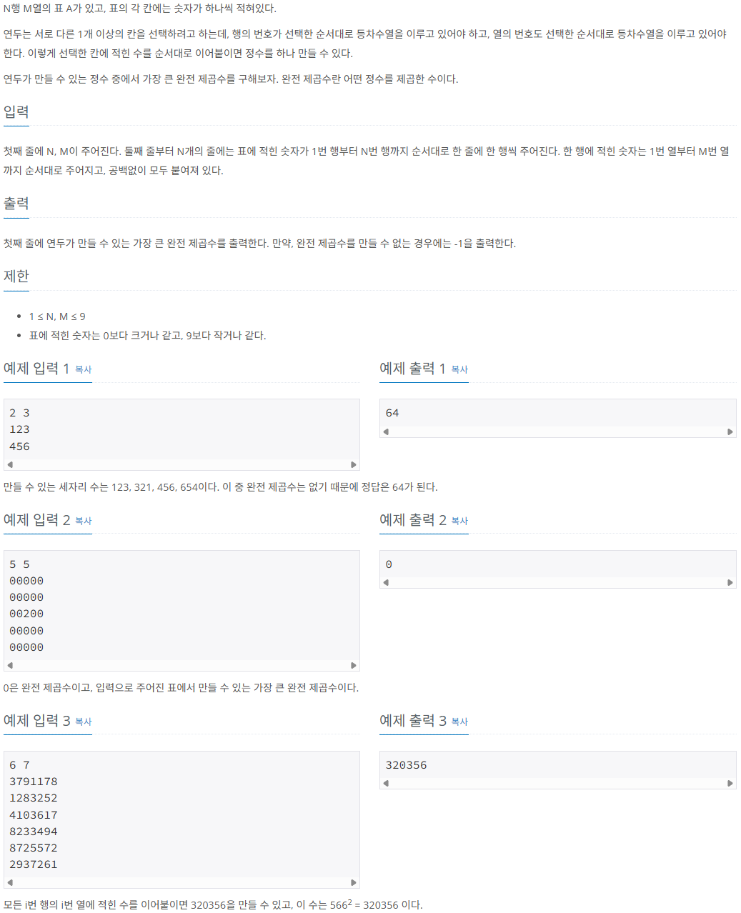 문제 제목: 제곱수 찾기 / 1025번 (골드 5단계)