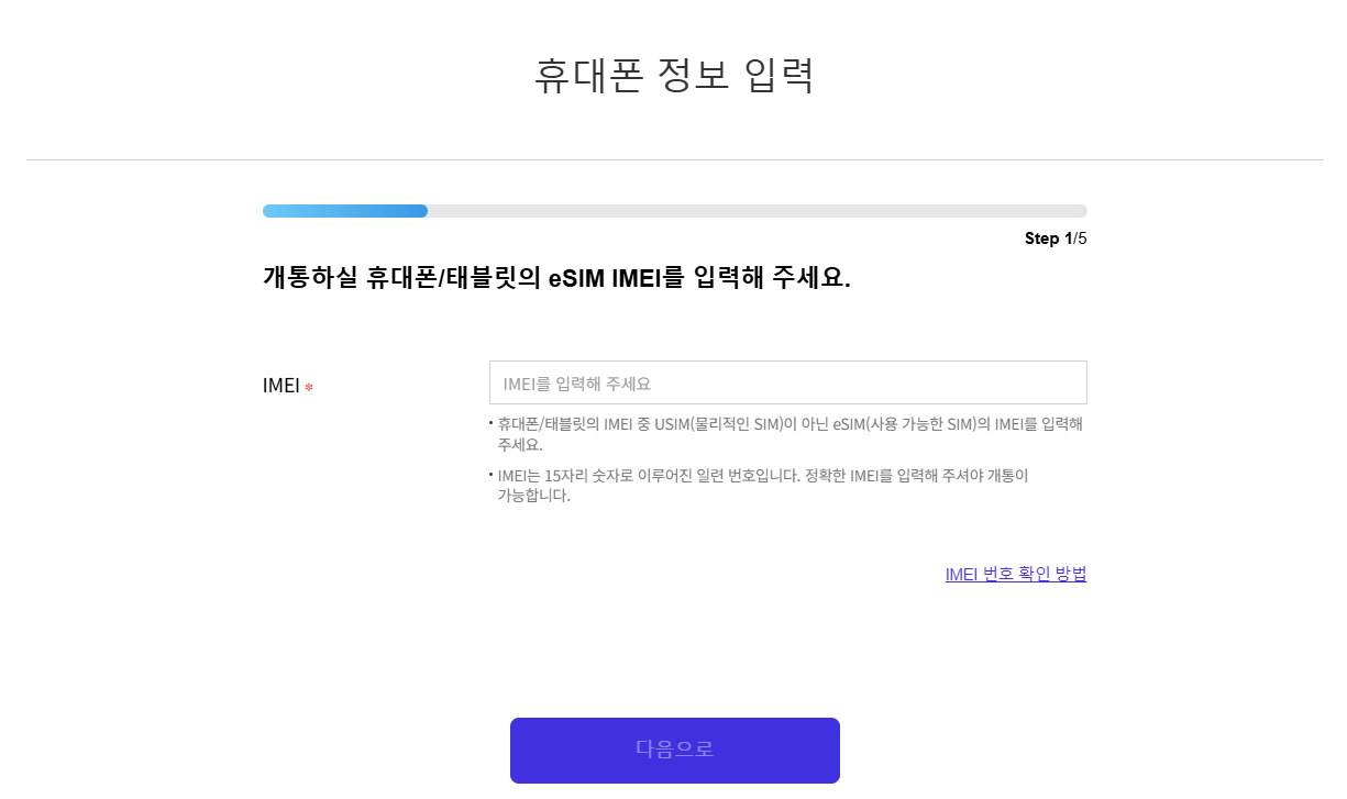 두 개의 화면 중 하나가 뜨실 텐데 상관없이 위의 조건에 맞도록 클릭 하신 후에 아래의 IMEI 확인 방법 버튼을 눌러서 자신의 OS에 맞게 입력 해주시면 됩니다.