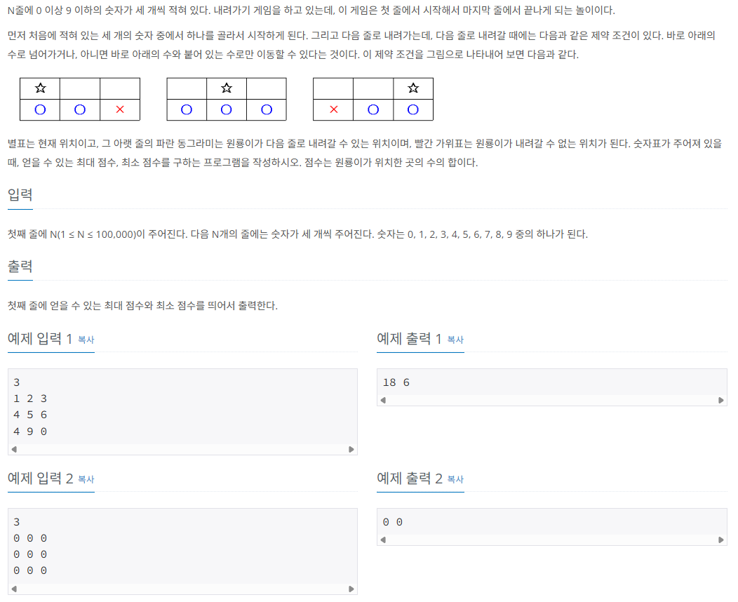 문제 사이트: https://www.acmicpc.net/problem/2096