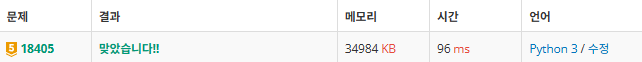 문제 사이트: https://www.acmicpc.net/problem/18405