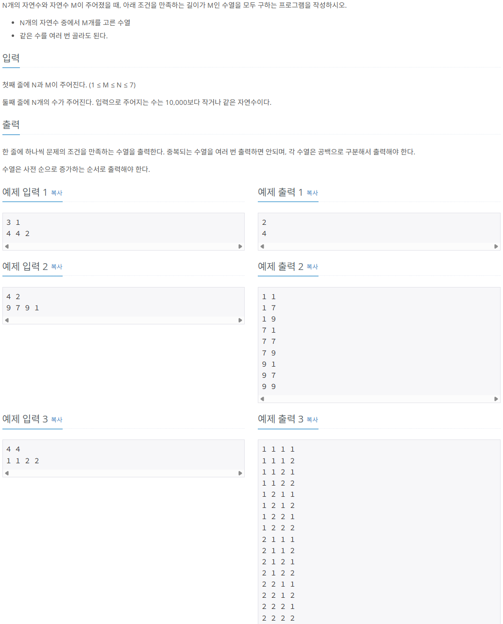 문제 제목: N과 M (11) / 15665번 (실버 2단계)