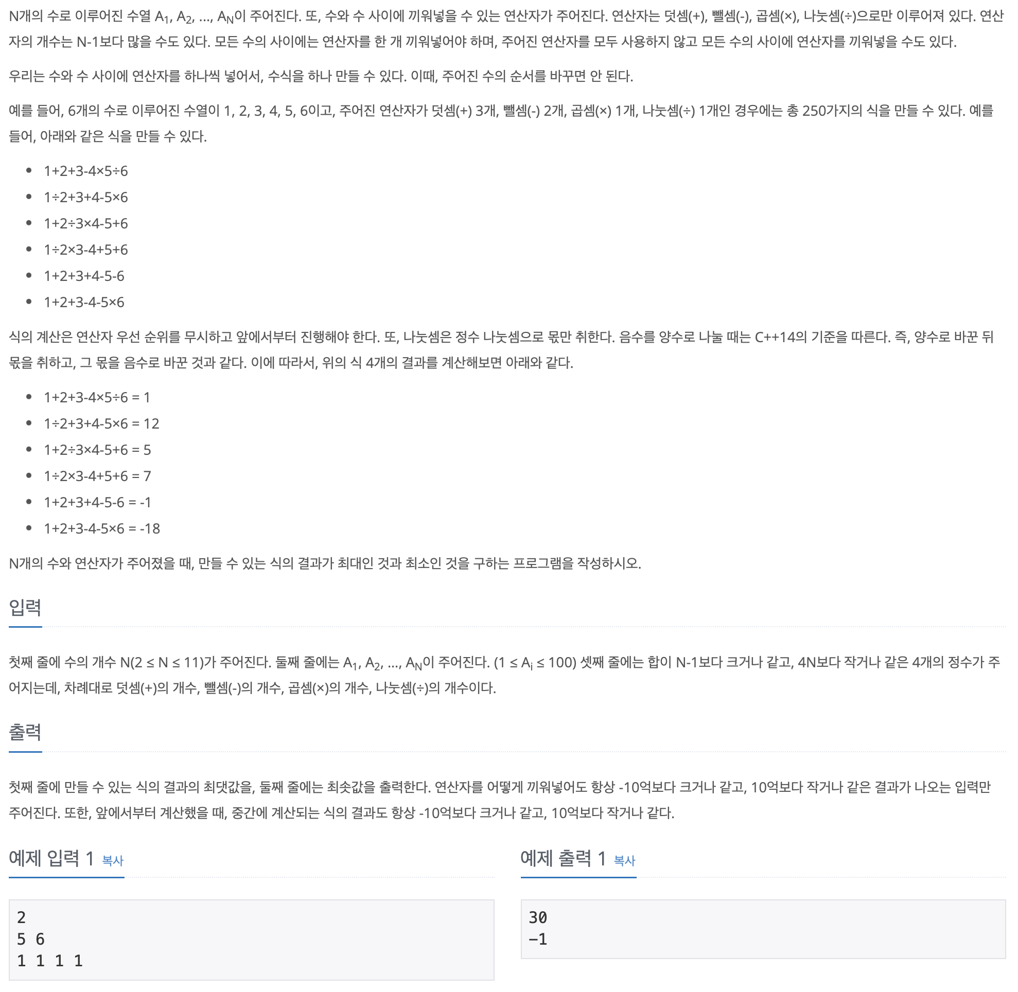문제 제목: 연산자 끼워넣기 (2) / 15658번 (실버 2단계)
