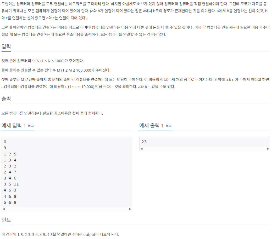 문제 제목: 네트워크 연결 / 1922번 (골드 4단계)