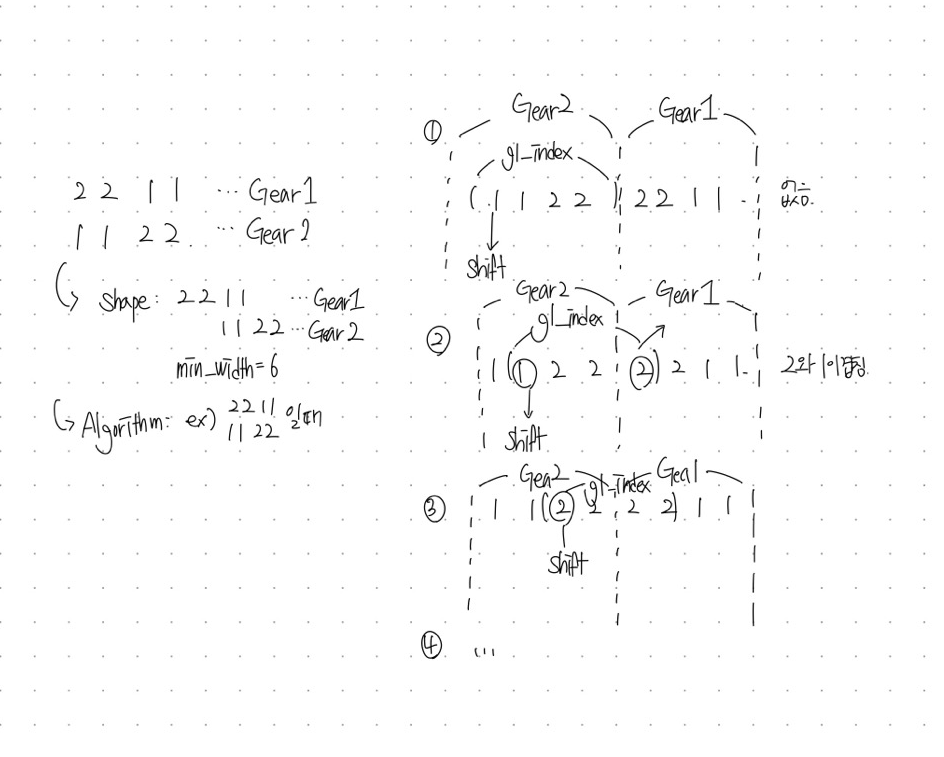 g1_index = i + shift # gear2의 i번째가 gear1의 어디와 겹치는지 계산