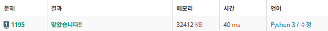 문제 사이트: https://www.acmicpc.net/problem/1195
