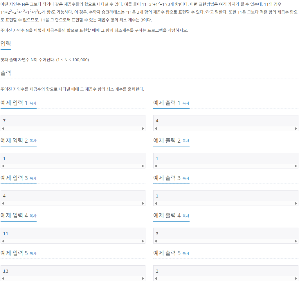 문제 사이트: https://www.acmicpc.net/problem/1699