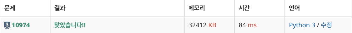 문제 사이트: https://www.acmicpc.net/problem/10974