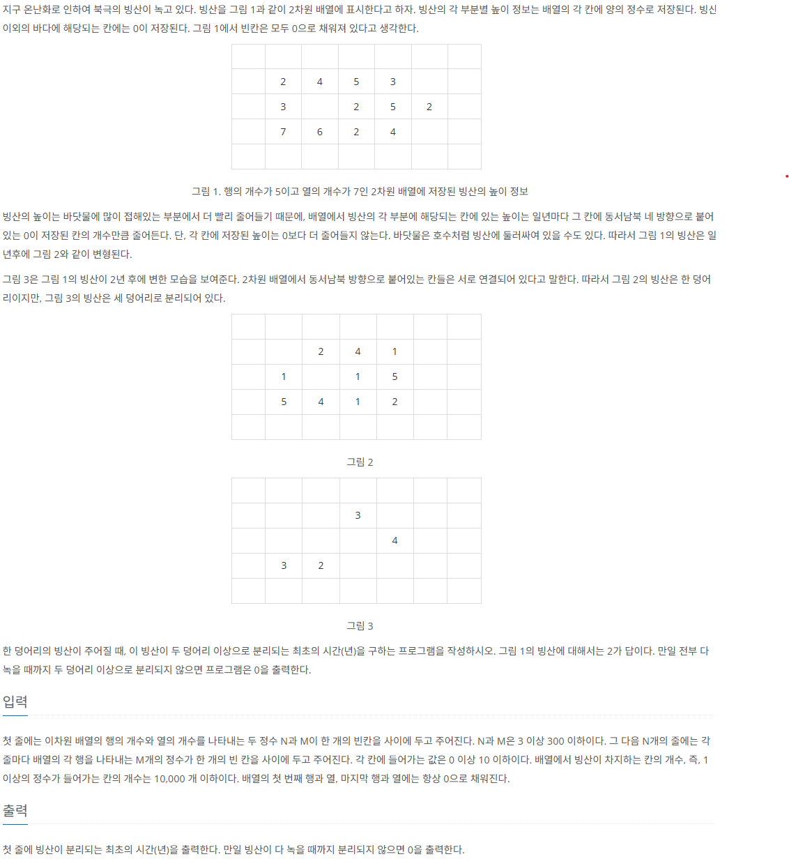 문제 제목: 빙산 / 2573번 (골드 4단계)
