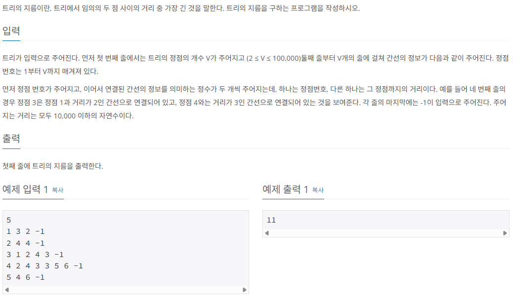 문제 제목: 트리의 지름 / 1167번 (골드 2단계)