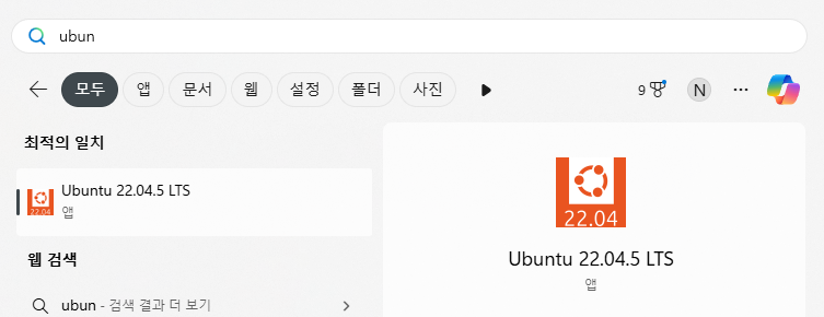 시작 메뉴(Windows 키)에서 Ubuntu 22.04 검색 → 실행 - 방법 2: