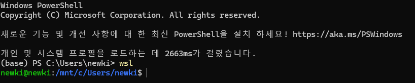 - 위 명령은 WSL과 기본 Ubuntu 배포판을 자동으로 설치합니다.