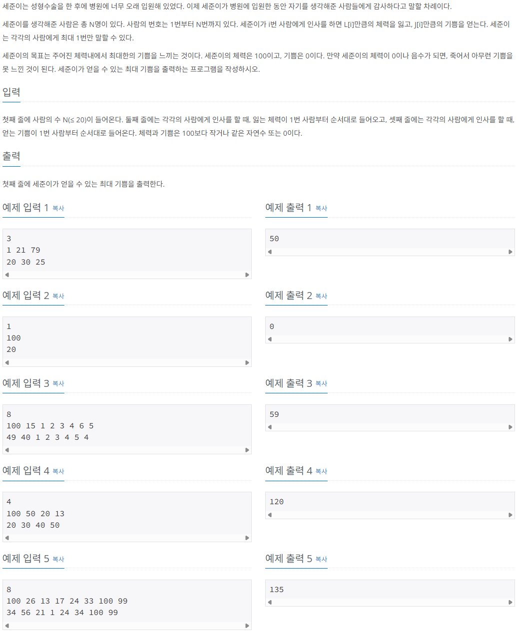문제 사이트: https://www.acmicpc.net/problem/1535