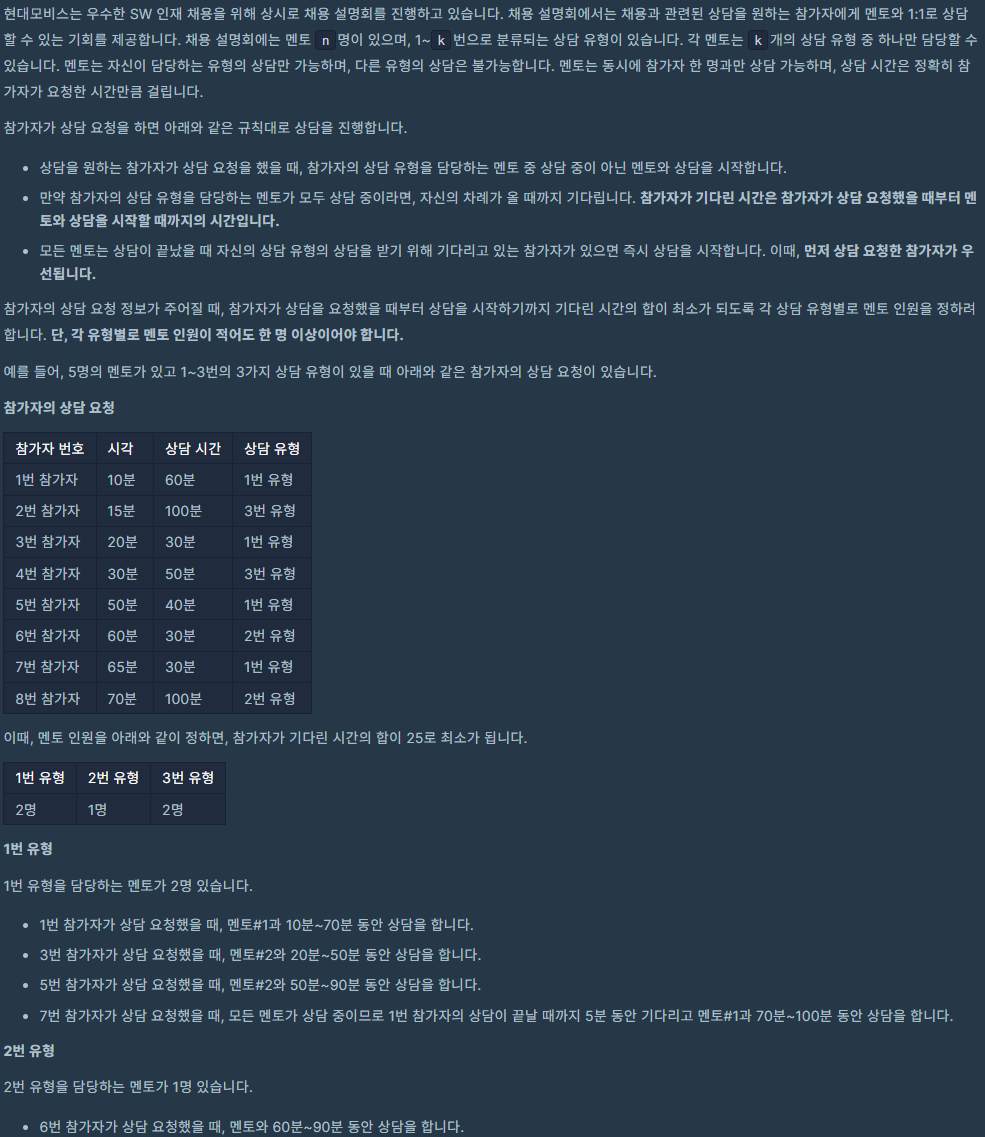 힙을 사용하는 이유는 멘토가 여러 명일 때, 항상 '가장 빨리 끝나는 멘토”를 찾아야 하는데 그걸 매번 min()으로 찾으면 O(N)이라 느립니다.