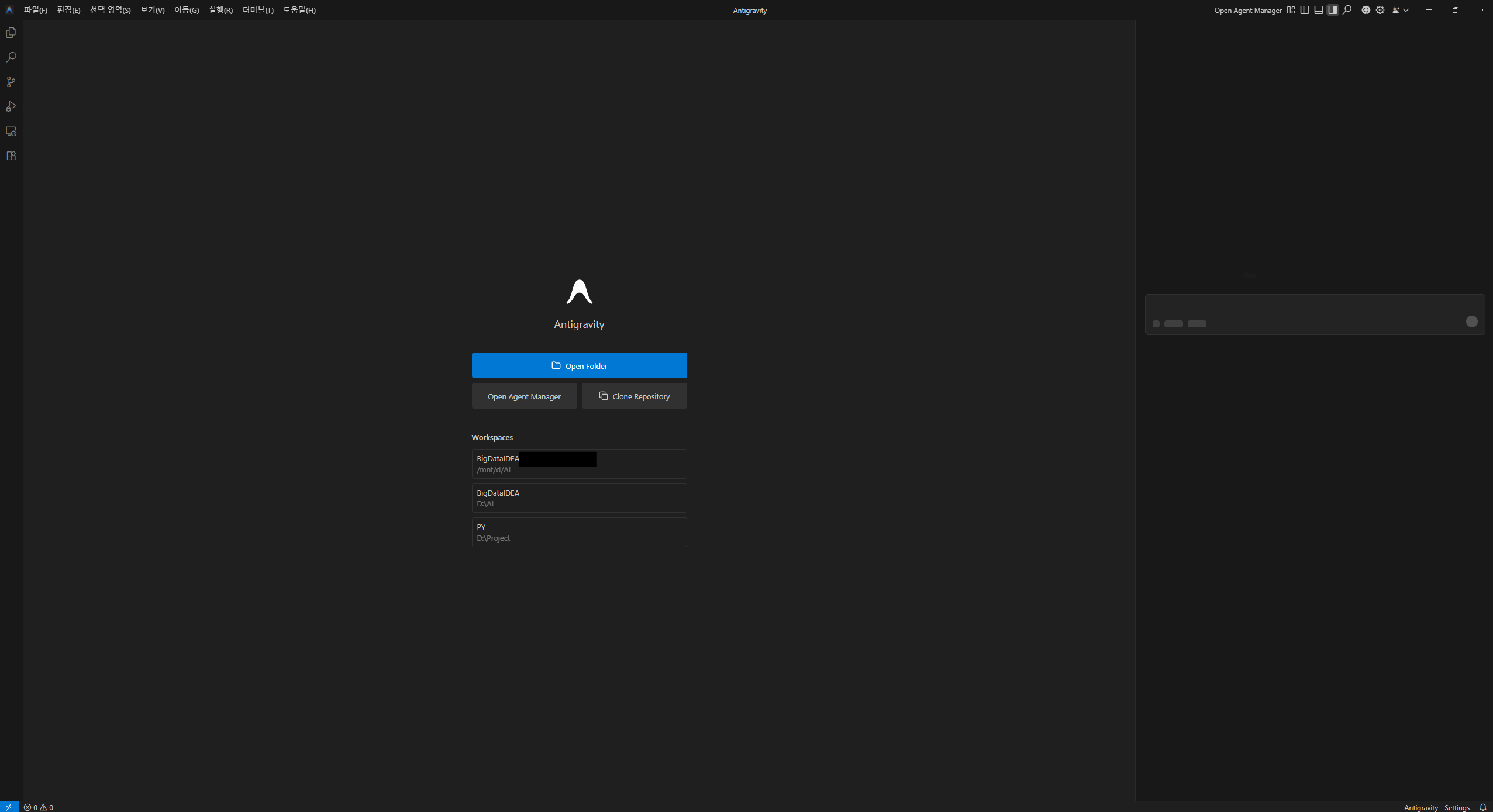 설치가 완료되면 자동으로 Antigravity가 실행됩니다.