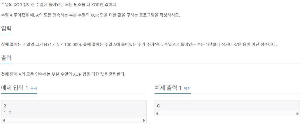 부분배열 [i, j] XOR = prefix[i] ^ prefix[j+1]